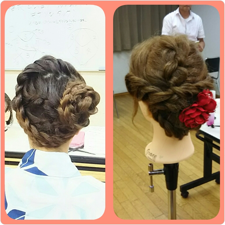 先週は研修が続いた一週間でした。仕事後に夏にむけて浴衣に合うアップスタイルのお勉強。