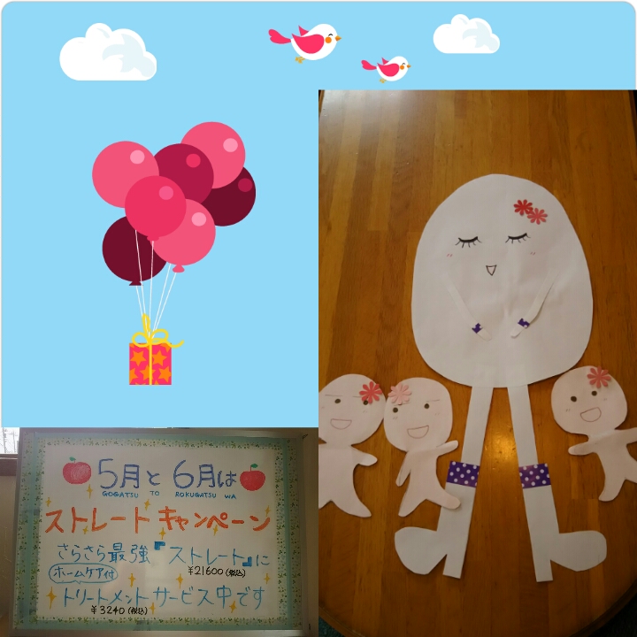 さて、ただいまはストレートをされたお客様にトリートメントをサービスさせていただいています。少しでも気分よくいれますようにホームケアのトリートメント付きです♪